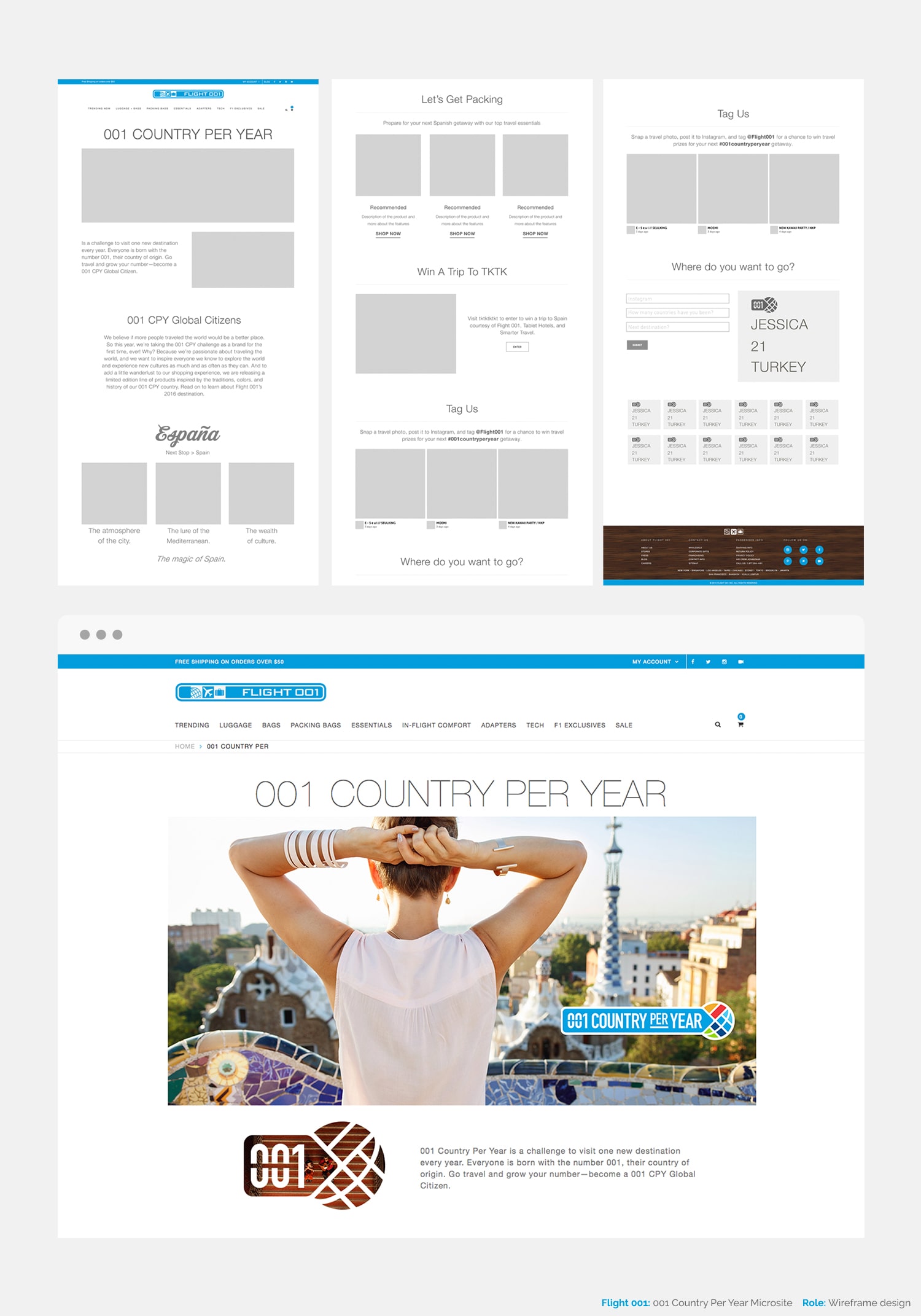 I led and created the low and high fidelity wireframes for the One Country Per Year microsite. The main concept of One Country Per Year, was to get people to try to visit a new country, instead of the same places we tend to always travel to. The site is a mix of information highlighting the culture of the country while adding a fun interactive element. The team wanted to have something that the user could share on social media platforms that promotes this idea. As a team we came up with a badge that one could share on Instagram or Facebook that states a name, how many countries visited and what their CPY country was for the current year. The user inputed the answers in a form and the microsite generated this shareable badge.